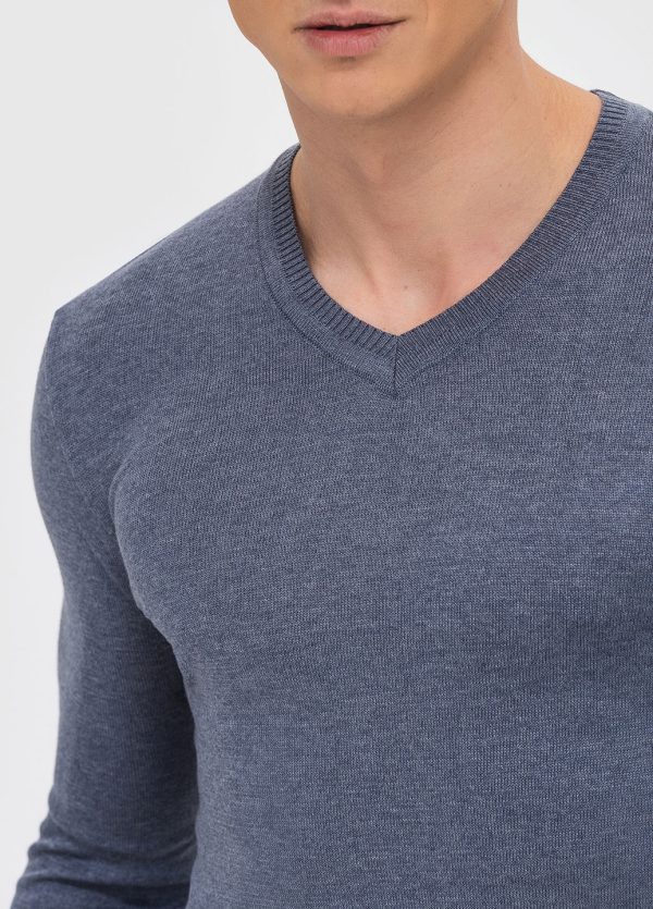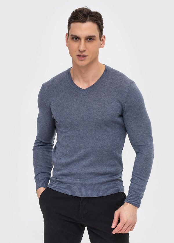 Класичний джемпер приємного кольору, водночас стриманого і виразного. Має неглибокий V-образний виріз, який підкреслює мужність чоловічої фігури.